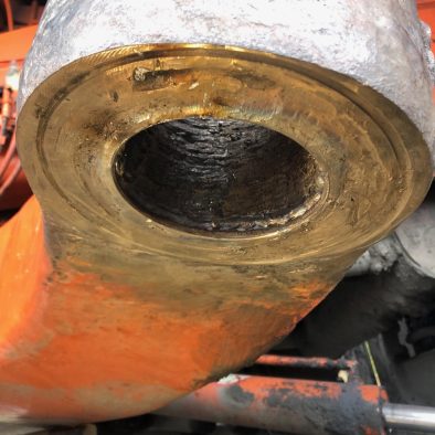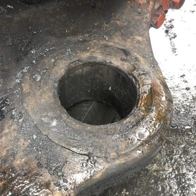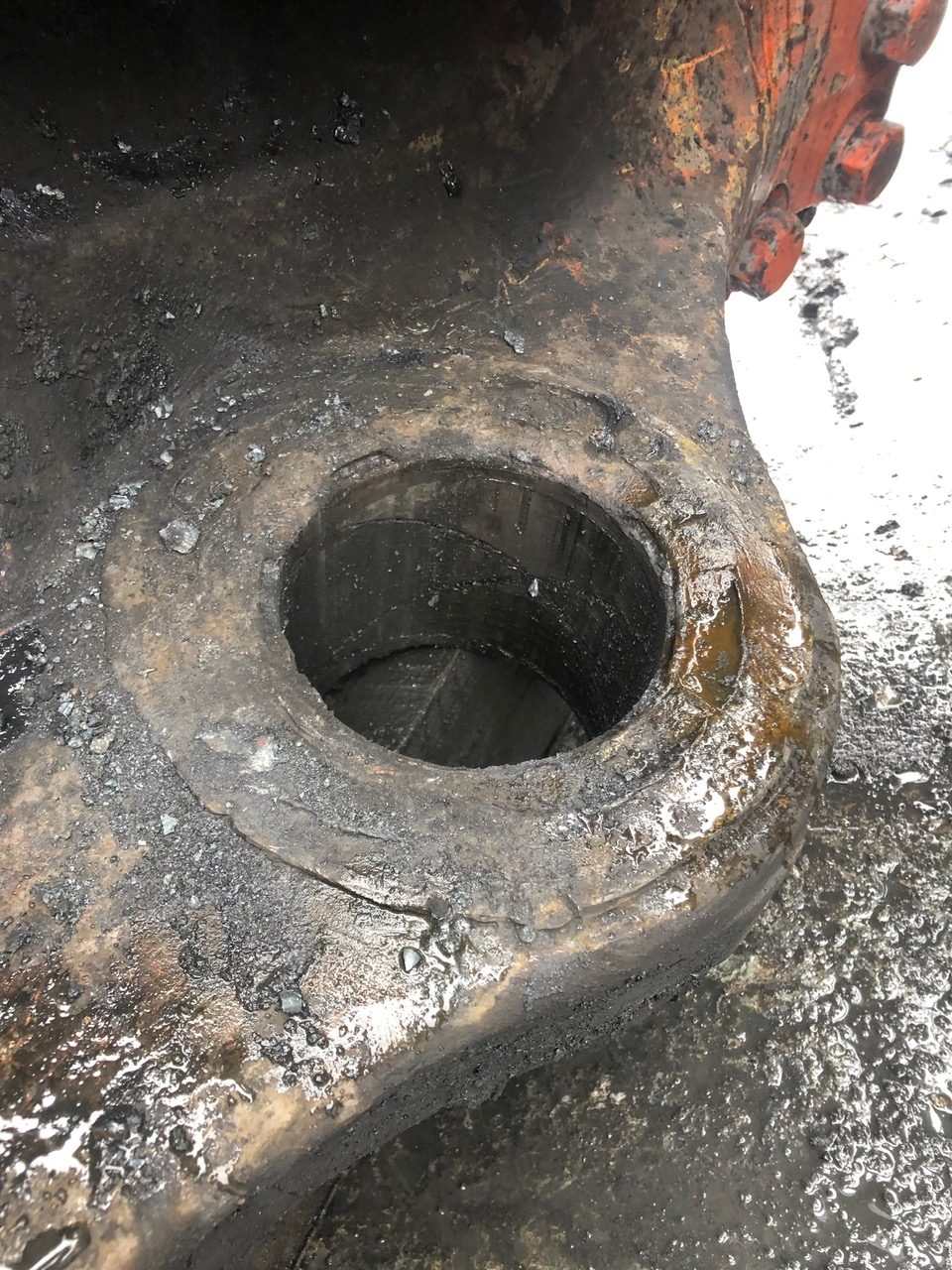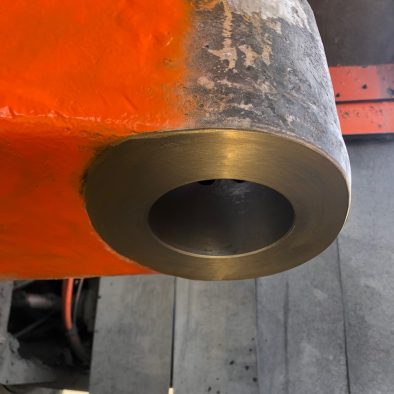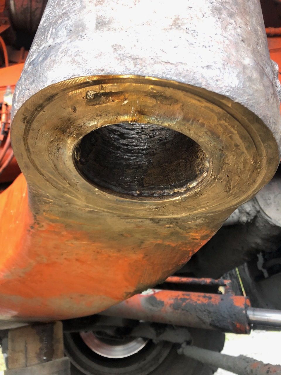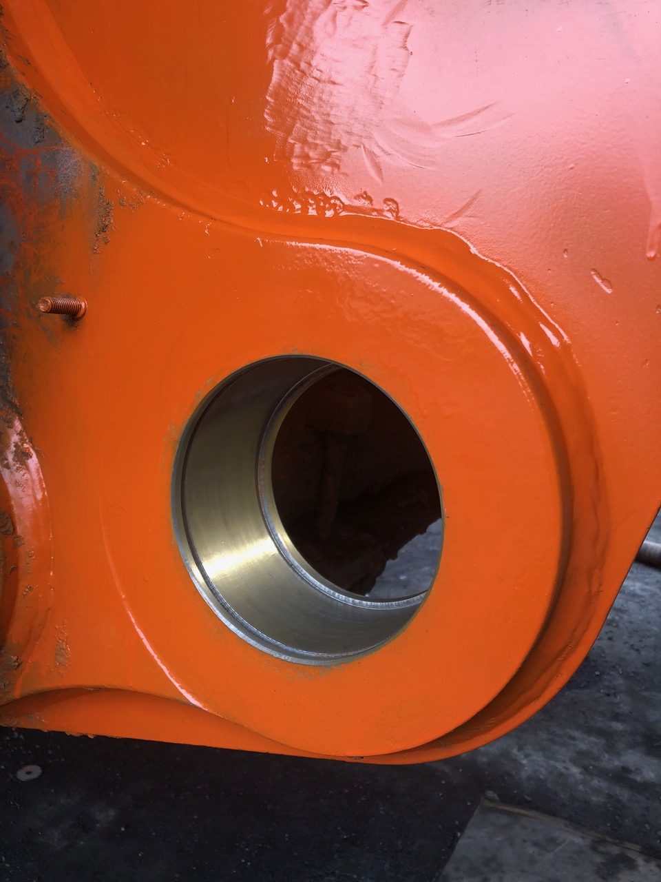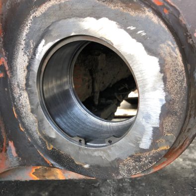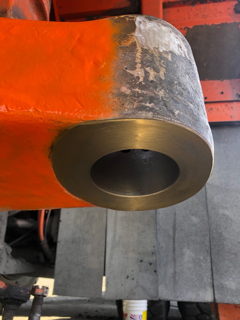 - Hand weld build-up and refacing of thrust bearing faces on trailing arms and their opposing spindle bearing surfaces