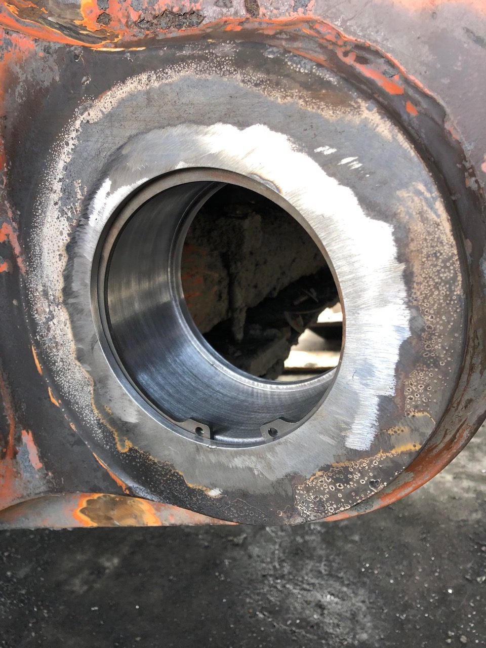 - Hand weld build-up and reboring of rear trailing arm bores in truck frames and rear axle housings, including re-machining snap ring grooves and installing factory spherical bearings