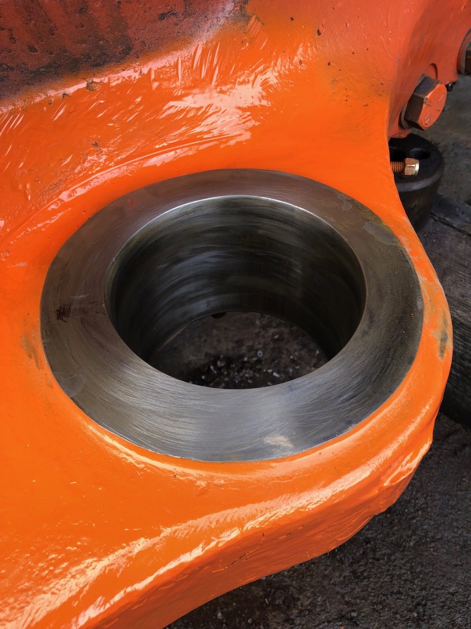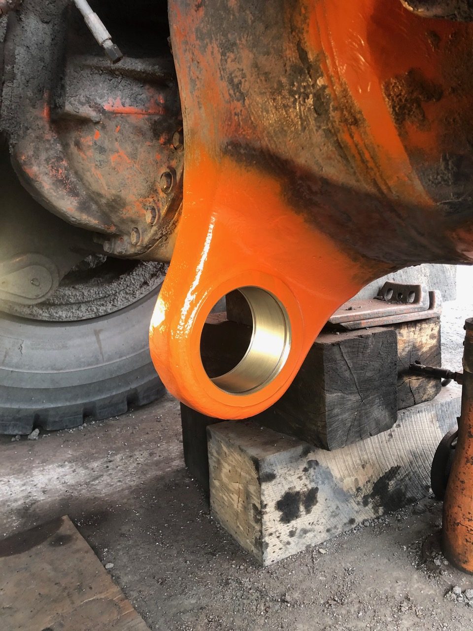 - Welding and line boring trailing arm–style axle and spindle king pin bores, including removal and replacement of all factory wear bushings
