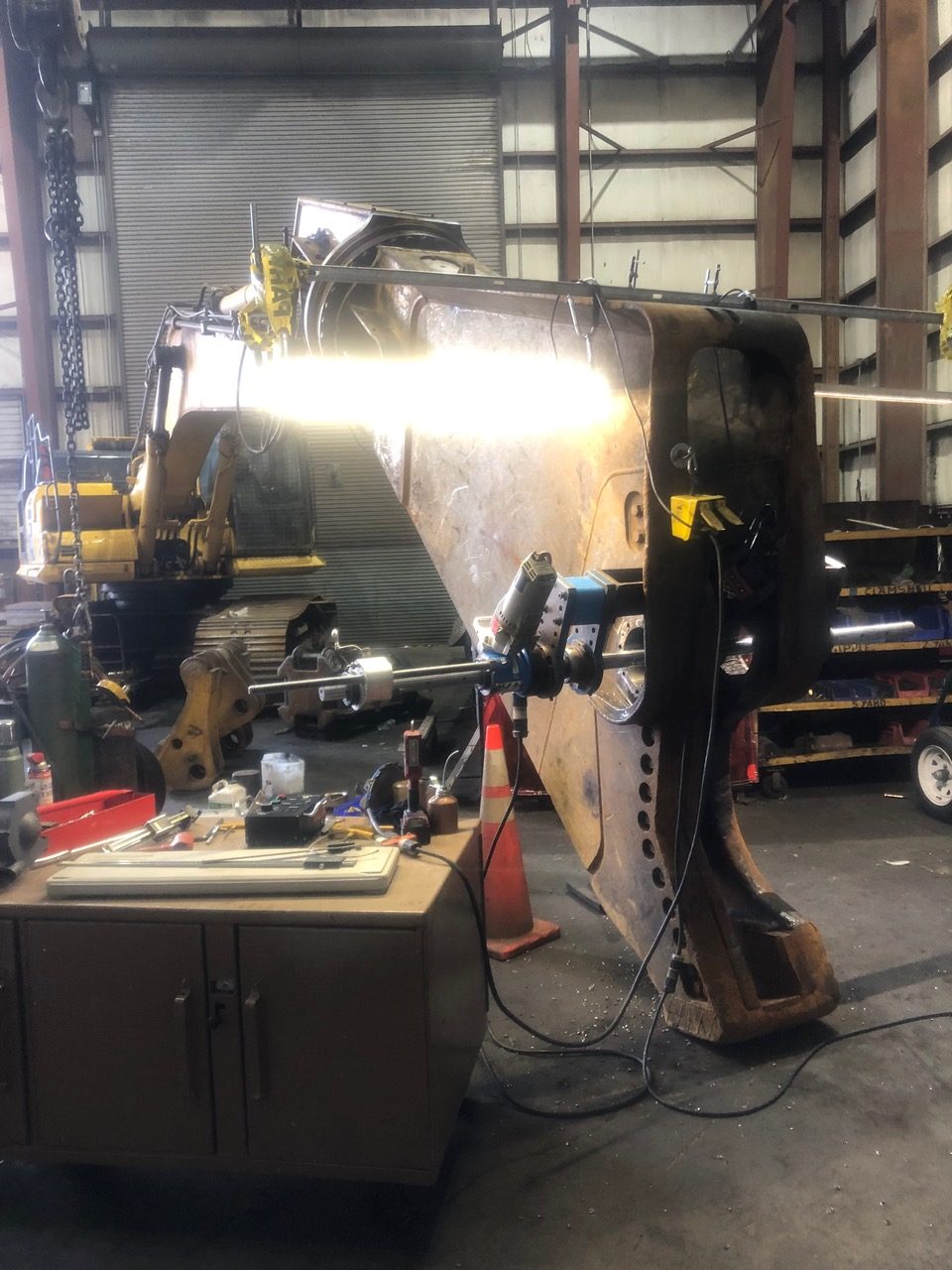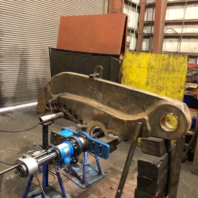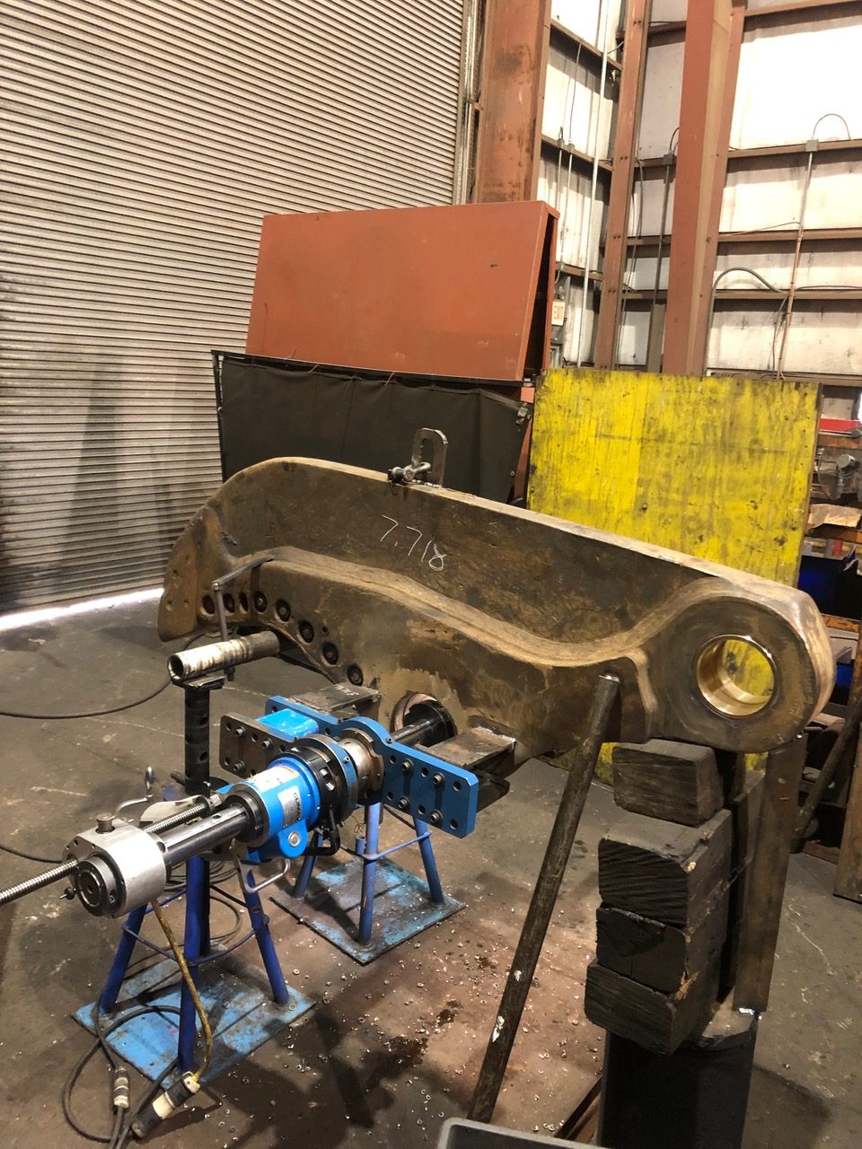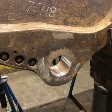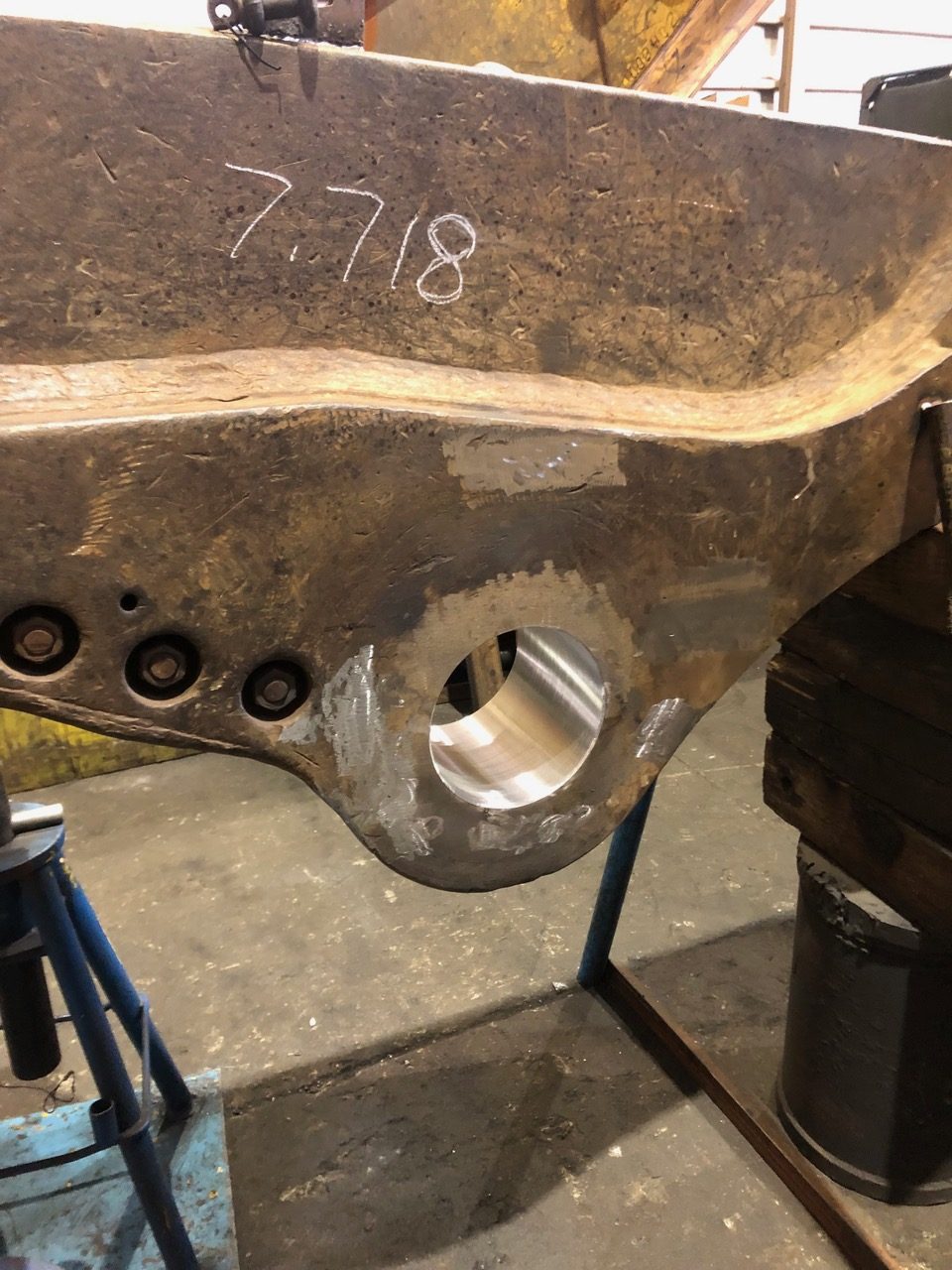 • Weld build-up, line boring, and facing of pivot pins, bushing bores, hydraulic cylinder mounts, and rod eyes