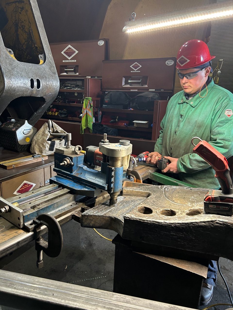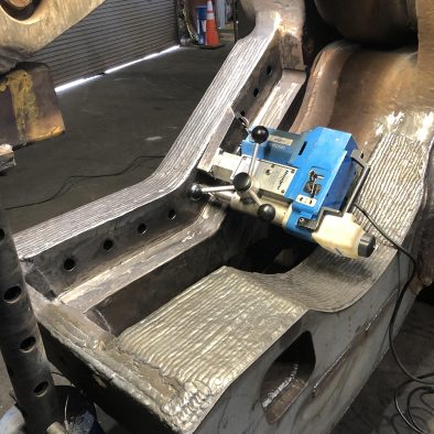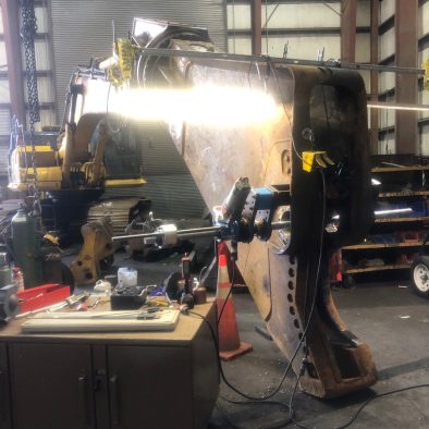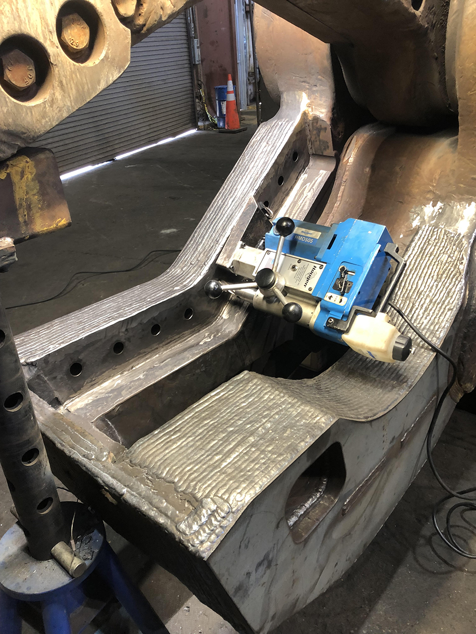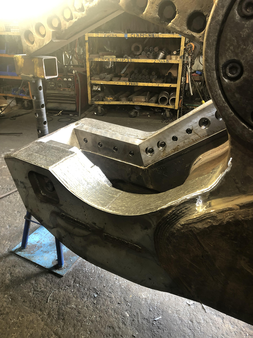 • Weld build-up, line boring, and facing of pivot pins, bushing bores, hydraulic cylinder mounts, and rod eyes